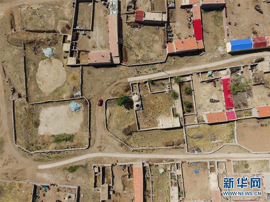 6月7日,韩四虎在哈彦陶勒盖自然村开车出诊(无人机拍摄)。新华社记者 刘磊 摄
