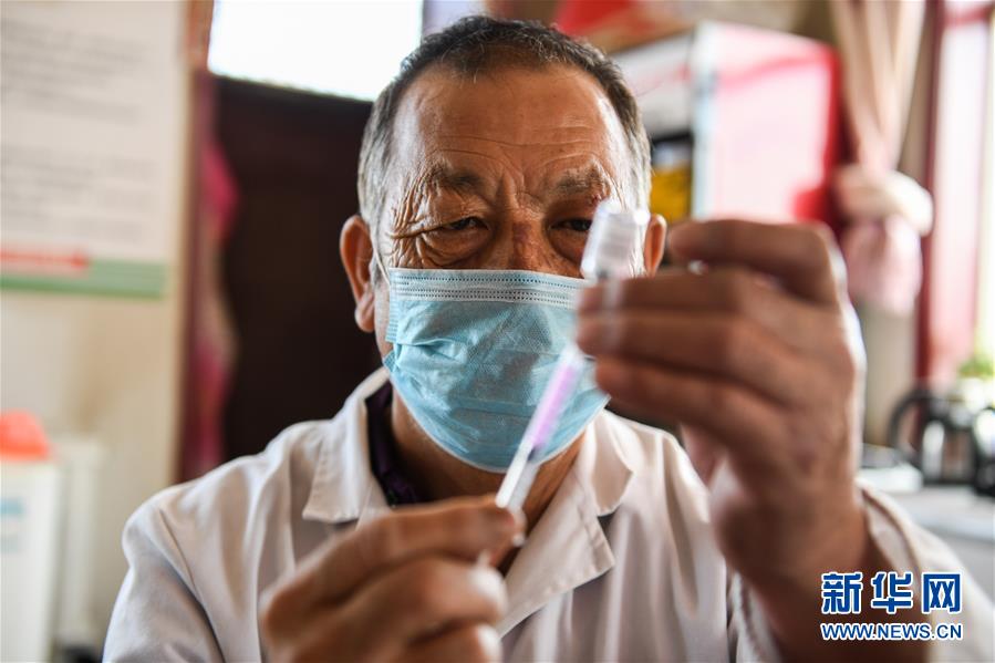 6月8日,在东壕子自然村,韩四虎准备为幼儿接种疫苗。新华社记者 刘磊 摄