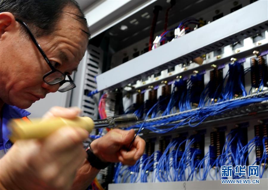 6月18日,在中铁电气化局三公司信号技术培训中心,参赛选手在室内故障处理项目中修改电路。新华社记者 李安 摄