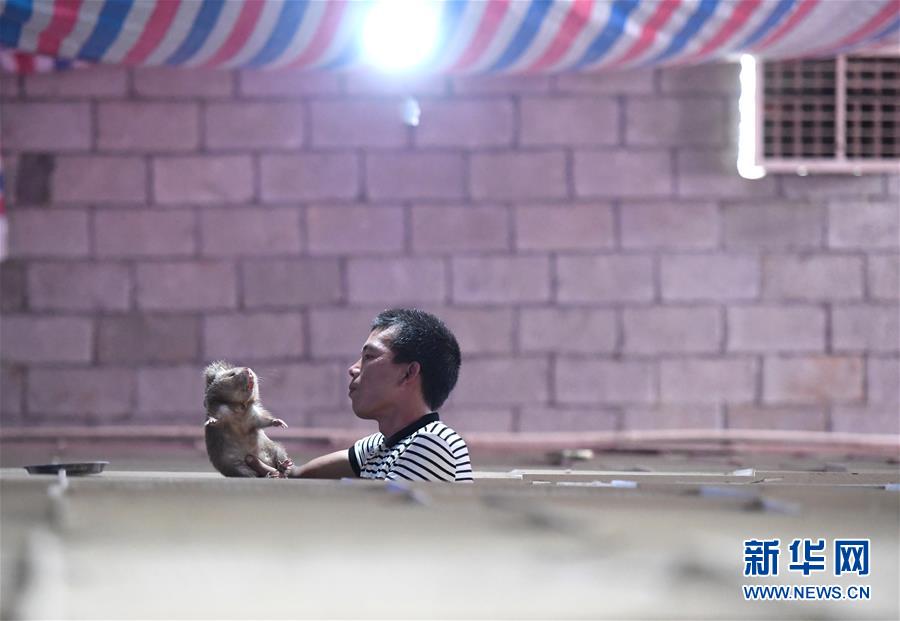 6月17日,在广西柳州市柳南区洛满镇洛河村,周益翅在养殖房里查看竹鼠生长情况。 新华社发(黎寒池 摄)