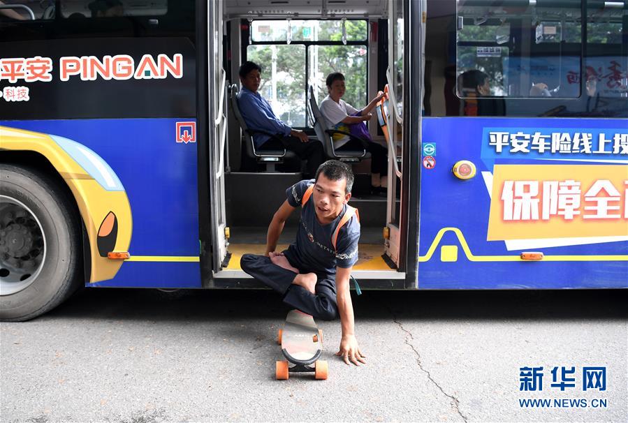6月18日,周益翅乘坐公交车到柳州市区办事。 新华社发(黎寒池 摄)