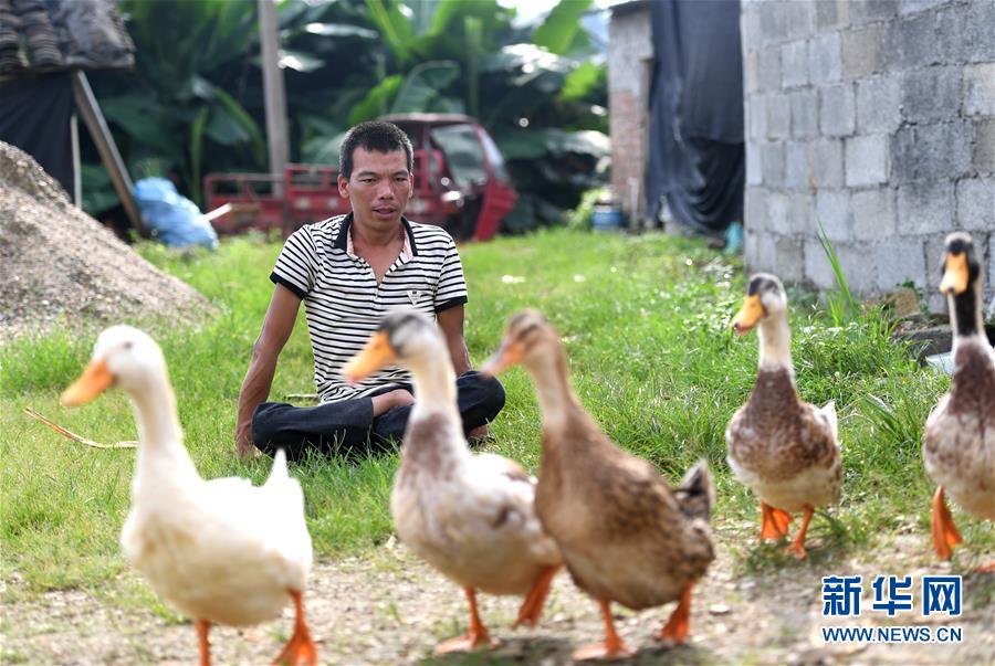 6月17日,在广西柳州市柳南区洛满镇洛河村,周益翅“走”在回家路上。 新华社发(黎寒池 摄)