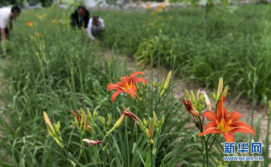 6月19日,石门镇太白岔村村民在黄花菜地里进行田间管理。近年来,地处秦岭深处的陕西省洛南县石门镇实施产业脱贫,依托“七彩田园”等一批专业合作社,带动贫困户发展食用菌、中药材、核桃、辣椒等特色种植。2018年石门镇436户1500人实现脱贫。新华社记者陶明摄