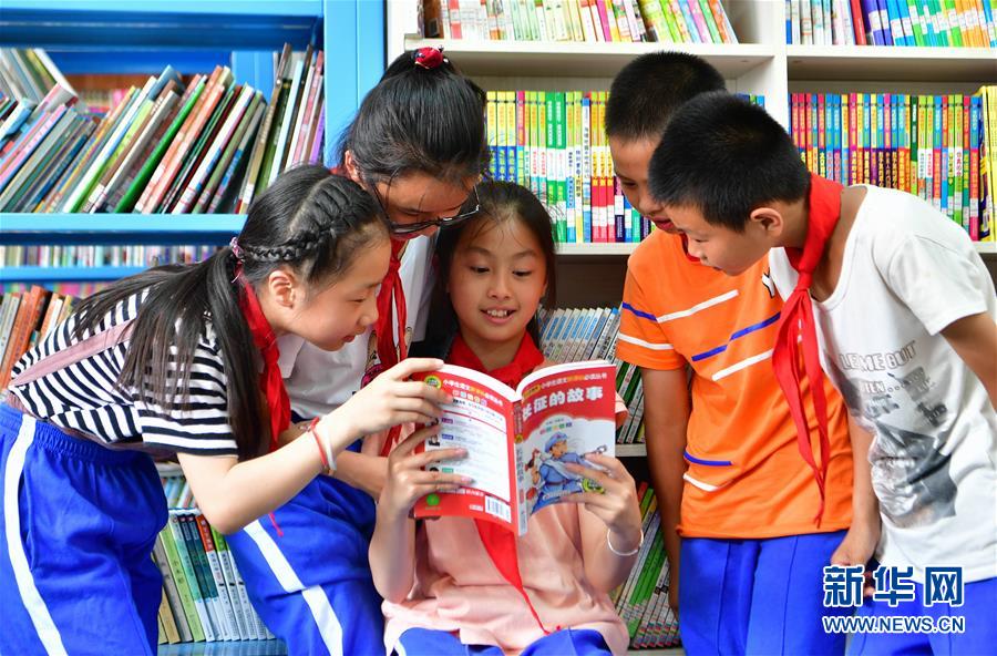 在长汀县南山中复小学图书室,学生们在阅读长征故事书籍(6月18日摄)。 新华社记者魏培全摄