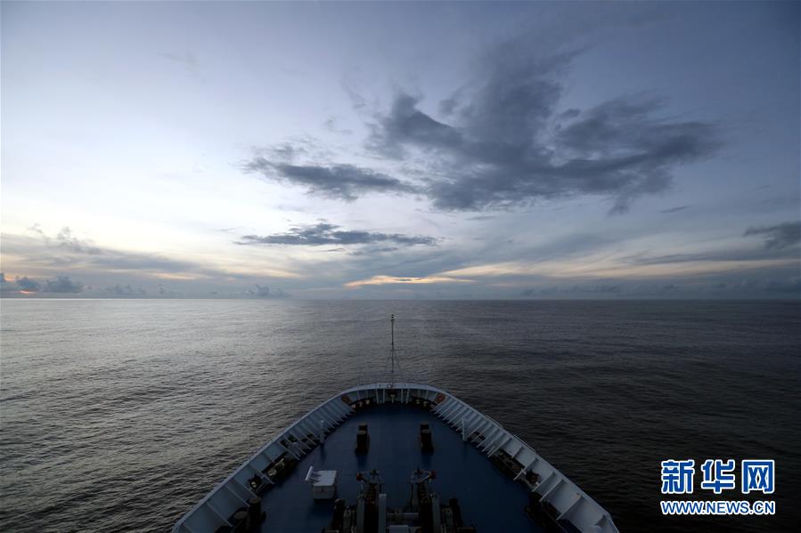6月19日,远望3号船穿过赤道继续向测控任务海域航行。 新华社记者 刘诗平摄