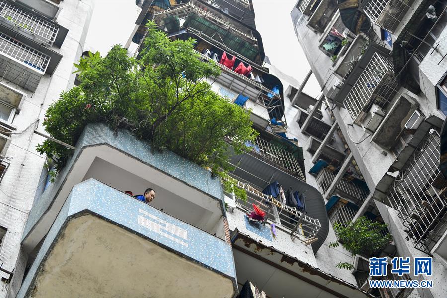 6月19日,幸银银在白象居小区爬楼。 新华社记者 刘潺 摄