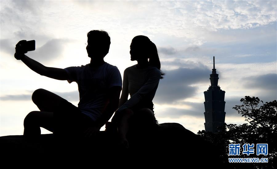 6月20日,一对情侣在台北市的象山上游览拍照。 近日台北持续高温天气,许多市民和游客选择到台北市区的象山观景消夏。从象山可以近观台北地标建筑101大楼,远眺市区风景。 新华社记者朱祥摄