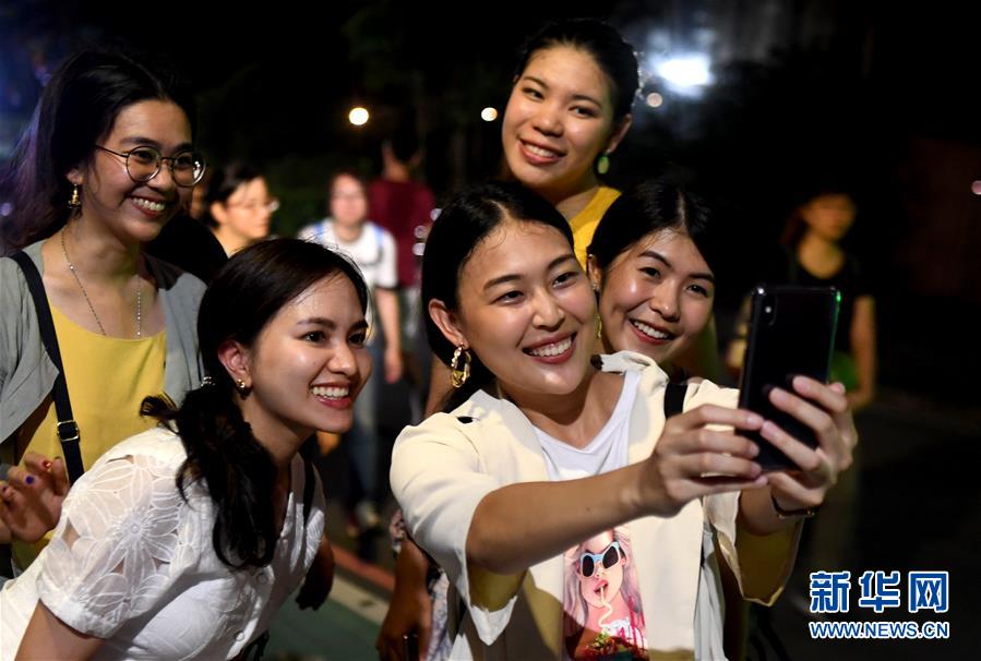 6月20日,游客在台北市的象山上游览拍照。 近日台北持续高温天气,许多市民和游客选择到台北市区的象山观景消夏。从象山可以近观台北地标建筑101大楼,远眺市区风景。 新华社记者朱祥摄