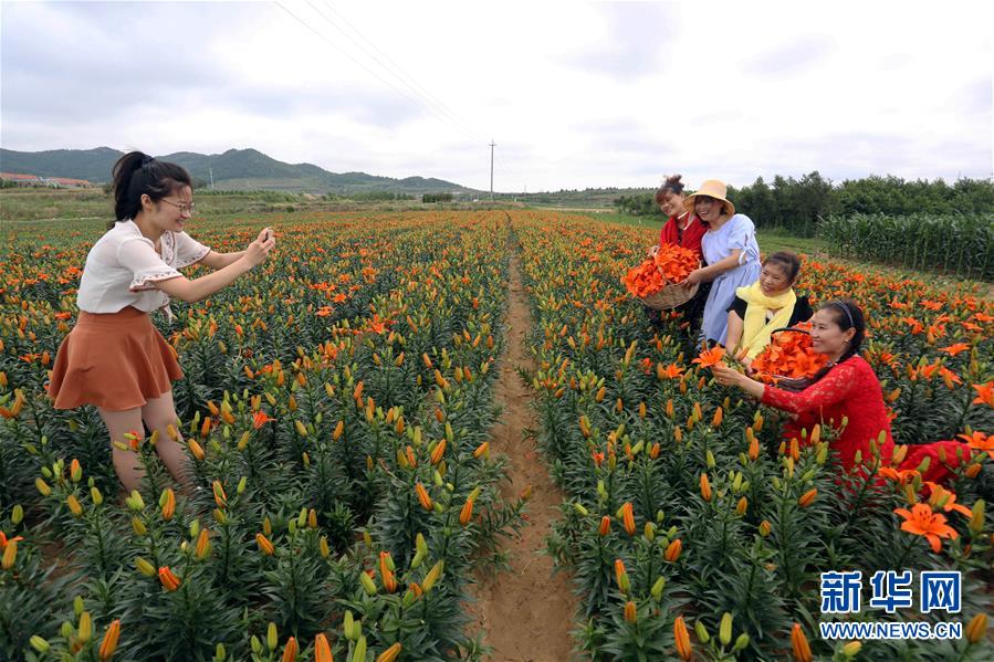 6月20日,游客在山东省荣成市虎山镇东庄村百合园拍照。 当下正是百合花盛开季节,山东省荣成市虎山镇东庄村百合园一片热闹景象,花农们正抓紧采收加工百合花,制作百合花茶。 近年来,山东省荣成市在内陆镇街积极发展花卉产业,打造集种植、加工、休闲旅游于一体的田园综合体,促进农民增收、农业增效。 新华社发(王福东 摄)