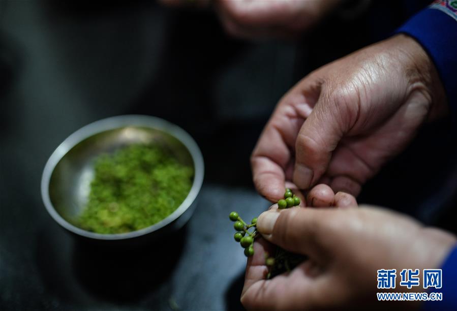 6月20日,在广西龙胜各族自治县伟江乡新寨村,苗族同胞在选山胡椒用作油茶配料。 在广西龙胜各族自治县,许多苗族同胞一日三餐都离不开油茶。每当客人来访,苗族同胞都会烧火架锅为客人打油茶。如今,随着旅游业的发展,苗家油茶越来越受到广大游客的喜爱,成为当地旅游美食中一块“金色招牌”。2018年12月,“龙胜苗族油茶制作技艺”被列入自治区级非物质文化遗产名录。 新华社发(黄勇丹 摄)