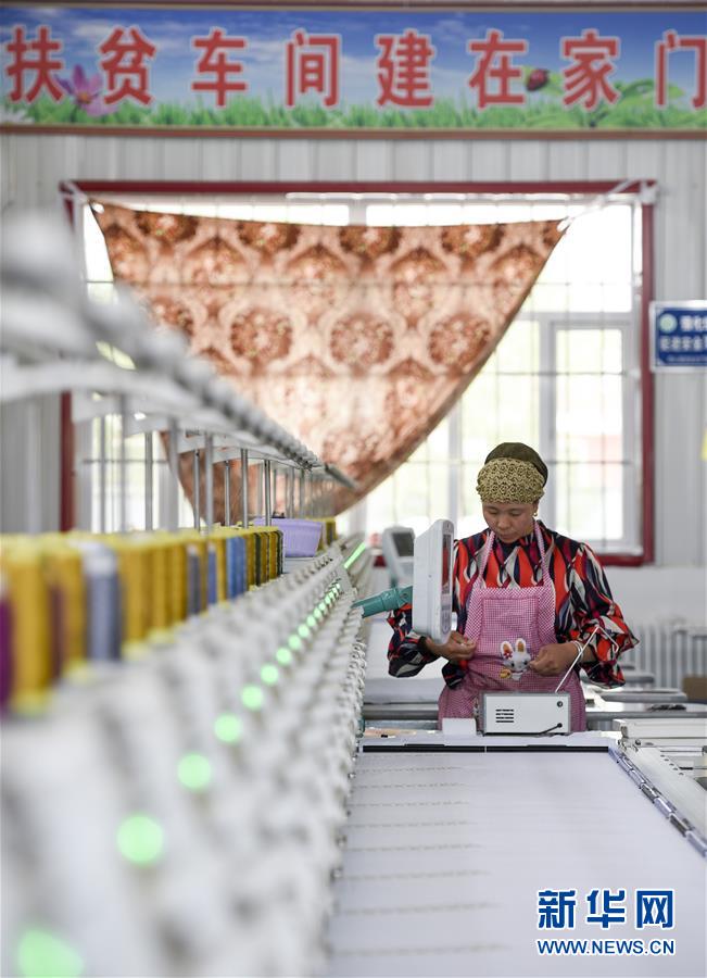 在宁夏同心县旱天岭村闽宁协作扶贫车间,村民在忙碌(5月21日摄)。 新华社记者 冯开华 摄