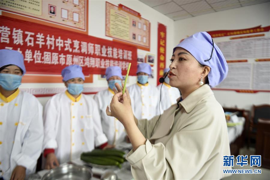 培训老师在中式烹调师职业技能培训班上为固原市原州区头营镇石羊村妇女讲解食材选用规范(5月14日摄)。 新华社记者 冯开华 摄