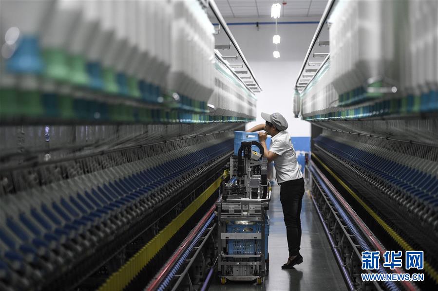 在位于固原市经济技术开发区的宁夏丰源纺织厂,工人在生产车间忙碌(5月18日摄)。 新华社记者 冯开华 摄