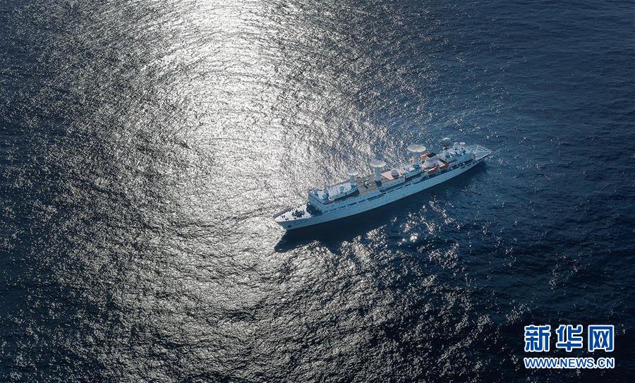 6月20日,远望3号船抵达南太平洋测控任务海域(无人机拍摄)。 新华社记者 李雨泽 摄