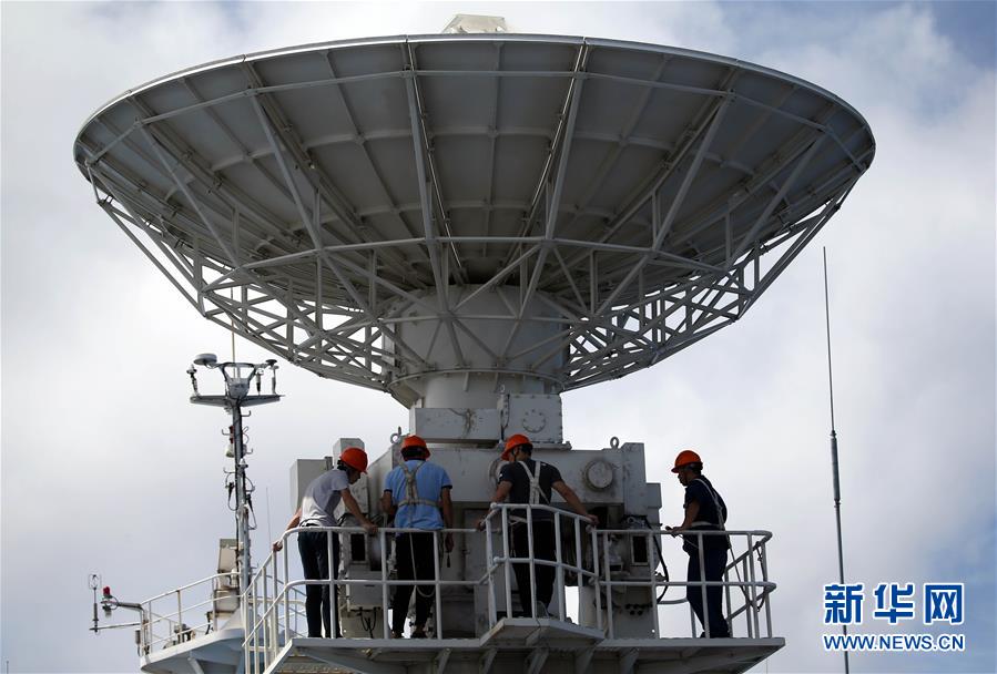 工作人员在检查远望3号船上的测控通讯设备(6月19日摄)。新华社记者 刘诗平 摄