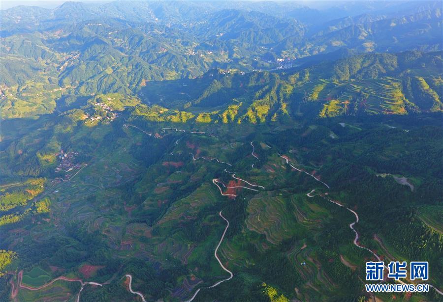 这是融水苗族自治县杆洞乡百秀村的村屯公路(6月19日无人机拍摄)。新华社记者 黄孝邦 摄