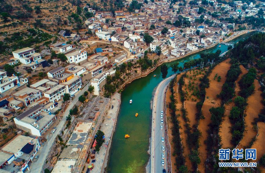 6月22日,游客在河北省涉县井店镇刘家村游玩(无人机拍摄)。 新华社记者 王晓 摄