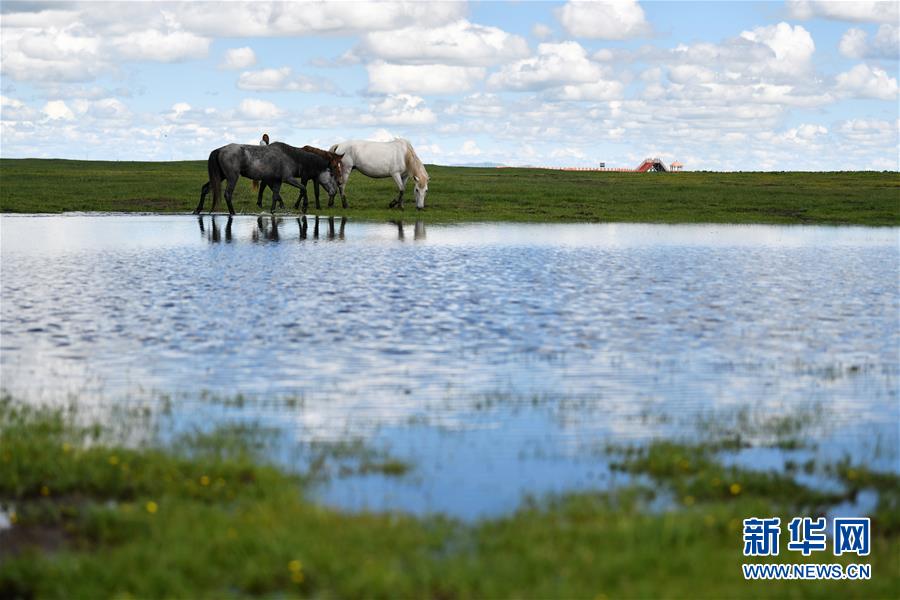6月22日,在玛曲县河曲马场,河曲马在湿地旁觅食休憩。 甘肃省甘南藏族自治州玛曲县是一个藏族聚居的纯牧业县,也是中国名马河曲马的中心产地。河曲马以体格高大、适应性强、能爬高山、善走水草地而闻名,与内蒙古三河马、新疆伊犁马并称为中国三大名马。 新华社记者 陈斌 摄
