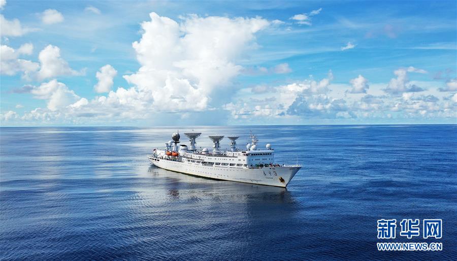 6月22日,远望3号船在南太平洋任务海域(无人机拍摄)。 新华社记者 李雨泽 摄