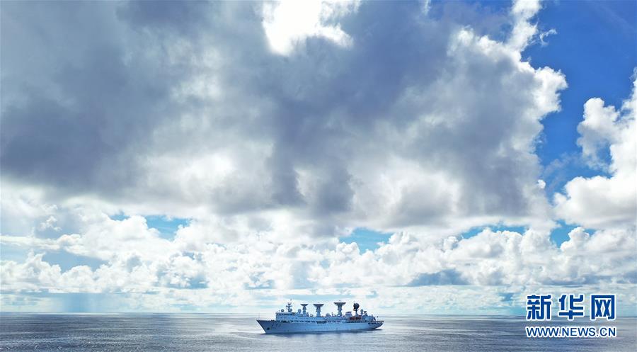 6月22日,远望3号船在南太平洋任务海域(无人机拍摄)。 新华社记者 李雨泽 摄