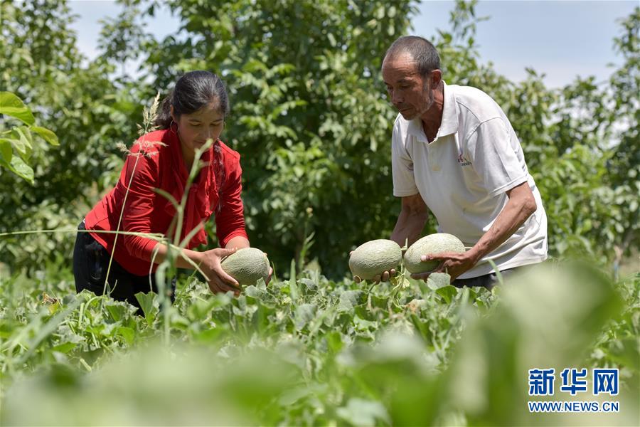 6月23日,新疆喀什地区巴楚县的瓜农在采摘留香瓜。新华社记者 丁磊 摄