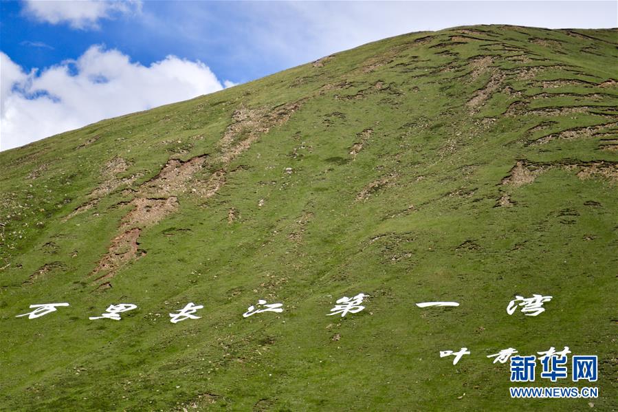 这是叶青村附近山岗上“万里长江第一湾”的标识(6月20日摄)。新华社记者 张龙 摄