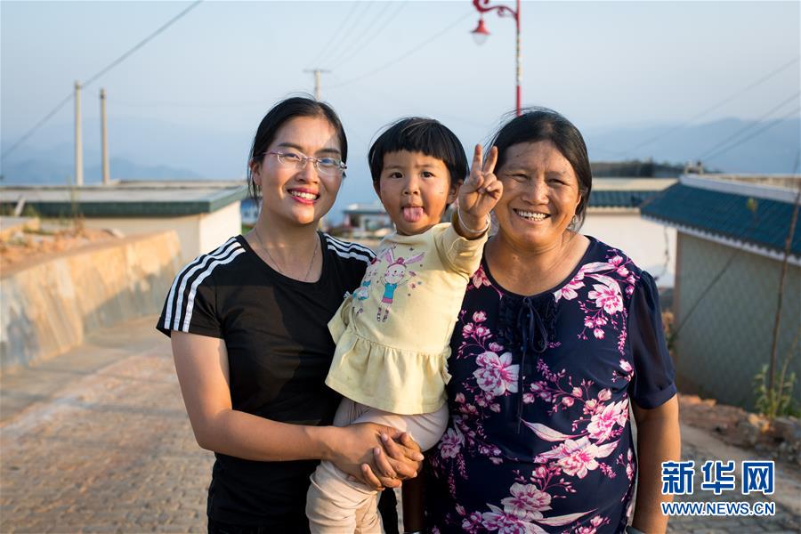 毕起美(左一)和女儿佳凤、妈妈冯枝兰合影(5月14日摄)。 新华社记者 胡超 摄