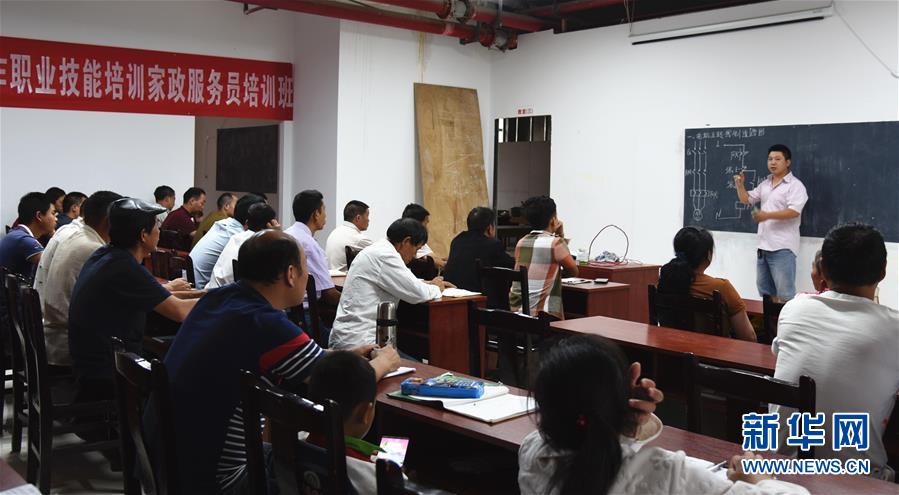 6月24日,培训教师在给易地扶贫搬迁群众授课。 作为贵州省黔西南州易地扶贫搬迁的主要安置点之一,兴义市洒金安置点共有3.2万余人搬迁入住,其中跨区域搬迁2.8万余人。为了让搬迁群众稳得住、能致富,当地政府通过建立工业园区、提供公益性岗位、举行就业培训、组织劳务输出、鼓励自主创业等方式,帮助搬迁群众实现“安居梦”。 新华社记者 施钱贵 摄