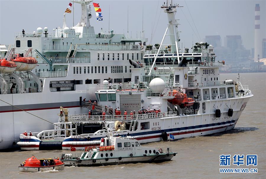 6月24日,救助船只从“发生碰撞的国际邮轮”转移“游客”。 新华社记者 陈飞 摄