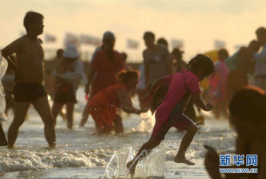 6月25日,游客在广西北海市银滩游玩。 近日,广西北海市银滩进入旅游旺季。 新华社发(赵婷婷 摄)