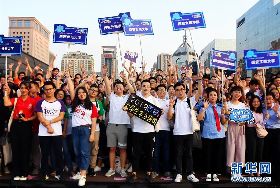 这是6月25日拍摄的“2019西安大学生毕业盛典”现场。 6月25日,“2019西安大学生毕业盛典”在西安永宁门举行,西安30多所高校的500余名毕业生代表汇聚在古老的明城墙下参加庆典活动。 新华社记者 刘潇 摄