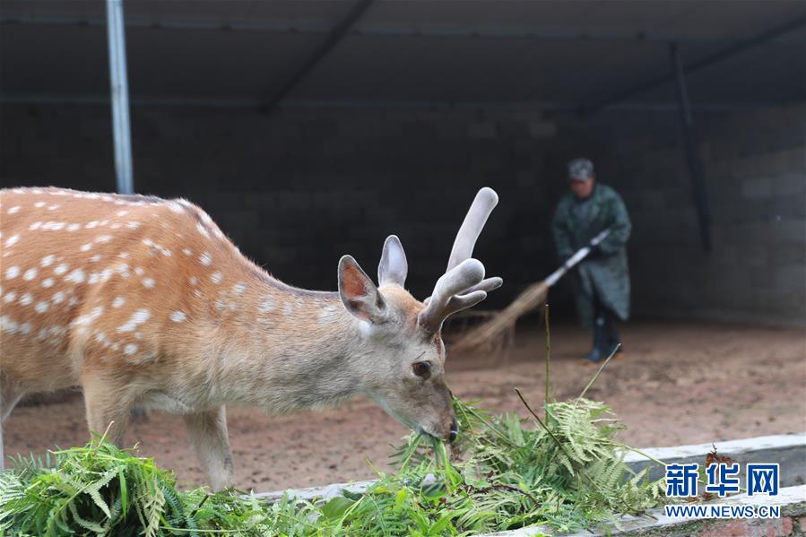 6月25日,村民在纳雍县勺窝乡务井村梅花鹿养殖基地里打扫圈舍。 纳雍县是贵州省毕节市的一个深度贫困县,姜远平是纳雍县居仁街道路尾坝社区村民,1992年到广东务工。2010年,姜远平看到沿海地区鹿茸等梅花鹿产品市场紧俏,决定到东北学习梅花鹿养殖技术。 2012年,姜远平学成后贷款买了76头梅花鹿回到家乡,开始利用当地丰富的荒山草坡资源从事梅花鹿养殖。几年下来,他不但还清了借款,还不断扩大养殖规模,开发出了鹿茸精、鹿胎膏、鹿角粉等10多种产品供应市场。 在养鹿的过程中,姜远平带动家乡群众一起脱贫致富。养殖基地需要工人,他尽量聘请贫困户;大家不懂梅花鹿养殖技术,他就手把手地教;梅花鹿养殖需要大量草料,他就动员大家种植和到山上收割牧草,全部保底收购。他还建起鹿产品加工厂,解决了100多名贫困群众的就业问题。 姜远平说,他最大的心愿就是利用自己掌握的技术,不断壮大梅花鹿养殖产业,开发出更多的产品,和家乡群众一起脱贫致富奔小康。 新华社发(韩贤普 摄)