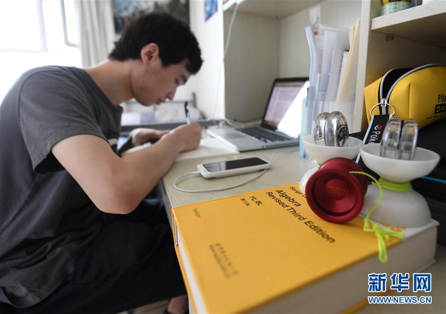 赵宸在宿舍内摆放着各种悠悠球以及数学专业书籍(6月23日摄)。 新华社记者 张晨霖 摄
