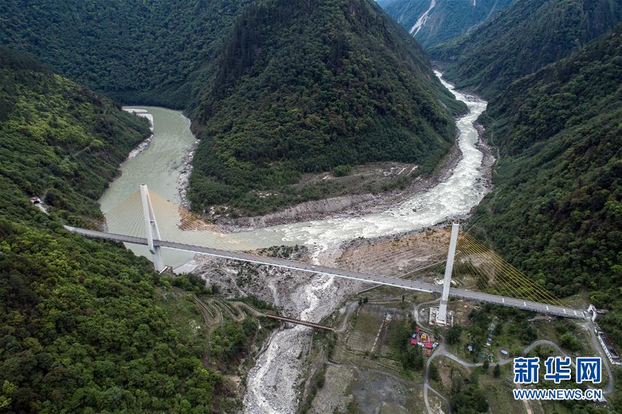 这是通麦路段上的迫龙沟特大桥(5月15日无人机拍摄)。位于西藏林芝市波密县境内的川藏公路通麦路段,曾被称为“通麦天险”。近年来,随着帕隆1、2号隧道、小老虎嘴隧道、飞石崖隧道及迫龙沟特大桥、通麦特大桥“四隧两桥”建成,昔日令人望而却步的“通麦天险”已成通途。
