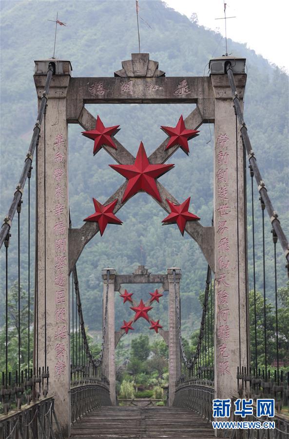这是飞仙关吊桥(6月24日摄)。飞仙关吊桥位于四川省芦山县飞仙关镇与天全县多功乡之间,是原川藏公路上的第一座吊桥。该桥于1951年竣工通车,1972年飞仙关吊桥旁的飞仙关石拱大桥建成使用,飞仙关吊桥就此“退休”。