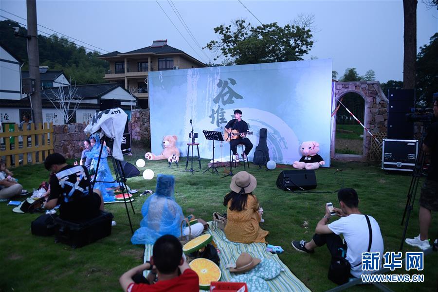 6月28日,音乐人在妙西镇龙山村的民谣音乐节现场表演。 当日,第二届“谷堆·乡创”民谣音乐节活动在浙江省湖州市吴兴区妙西镇龙山村举行。 新华社记者 黄宗治 摄