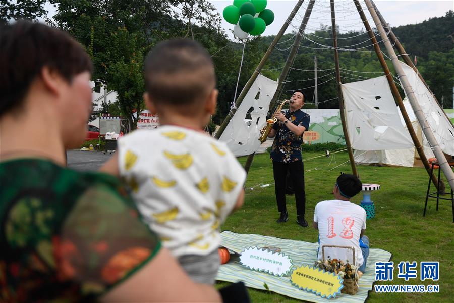 6月28日,音乐人在妙西镇龙山村进行萨克斯表演。 当日,第二届“谷堆·乡创”民谣音乐节活动在浙江省湖州市吴兴区妙西镇龙山村举行。 新华社记者 黄宗治 摄