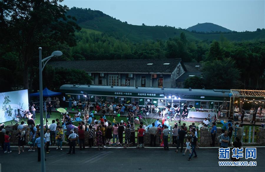 这是6月28日拍摄的妙西镇龙山村的民谣音乐节活动现场。 当日,第二届“谷堆·乡创”民谣音乐节活动在浙江省湖州市吴兴区妙西镇龙山村举行。 新华社记者 黄宗治 摄