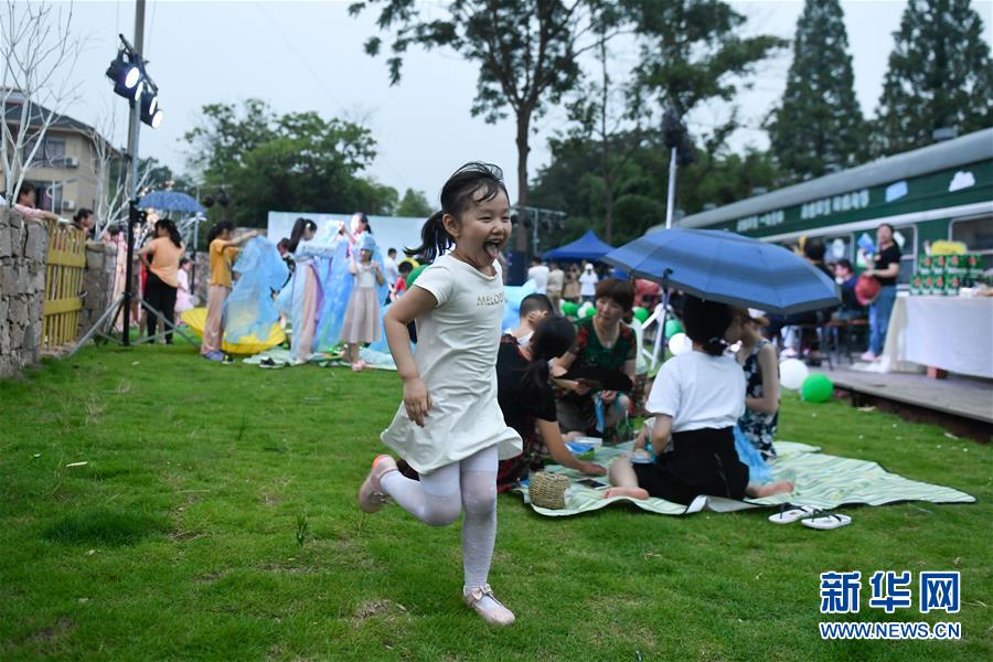 6月28日,小朋友在妙西镇龙山村的民谣音乐节现场玩耍。 当日,第二届“谷堆·乡创”民谣音乐节活动在浙江省湖州市吴兴区妙西镇龙山村举行。 新华社记者 黄宗治 摄