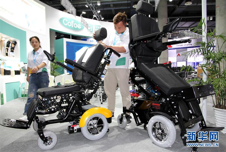 6月28日,一款智能轮椅亮相博览会。 当日,为期3天的第39届中国(常州)国际康复辅助器具产业暨国际福祉机器博览会在江苏常州开幕,来自国内外的180余家企业参展,展品涵盖人工智能、互联网+、3D打印、智能药盒以及中医理疗等领域。 新华社发(王启明摄)