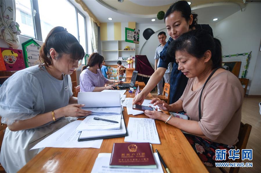 6月29日,家长在老师的指导下用手机通过政府统一公共支付平台缴纳孩子的学费。 当日,浙江省长兴县李家巷镇中心幼儿园进行秋季招生,有近200名孩子是外来务工人员子女。当地政府积极贯彻“最多跑一次”改革,把便民服务中心的各个部门前移到报名现场,开辟“绿色服务通道”,让外地户籍的家长和孩子们在报名现场直接办理社保参保缴费凭证、流动人口婚育证明、暂住证等多种入学需要的证明,同时还提供现场手机直接缴费服务,让这些家长和孩子一次性办理好入学手续,提升政府办事服务效率。 新华社记者 徐昱 摄