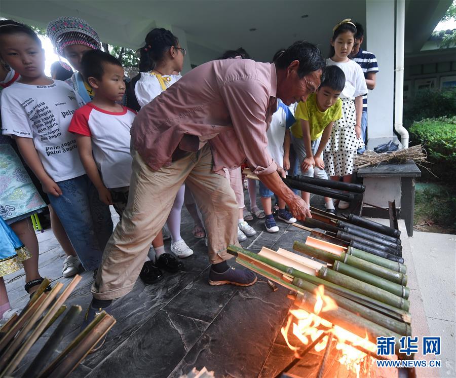 6月29日,槐坎中心小学的孩子们在江南红村体验竹筒饭的烧制。 暑期伊始,浙江省长兴县多所小学的孩子们开启暑期第一课——“红色课堂”。他们来到新四军苏浙军区纪念馆、江南红村等革命教育基地,通过参观、亲身体验等方式,了解和学习艰苦朴素、英勇奋斗、甘于奉献等优良传统,丰富暑期学习生活。 新华社记者 徐昱 摄