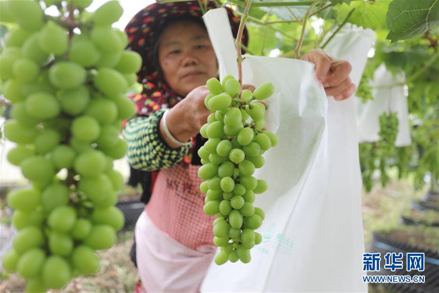 6月30日,在贵州省毕节市金海湖新区小坝镇凤凰村葡萄种植基地,果农给葡萄套袋。 夏日炎炎,各地农民抢抓农时忙碌在田间地头。 新华社发(王庆泽 摄)