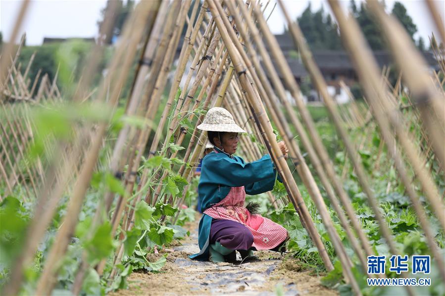 6月30日,在贵州省丹寨县扬武镇干河村冬瓜种植基地,瓜农在管护冬瓜。 夏日炎炎,各地农民抢抓农时忙碌在田间地头。 新华社发(黄晓海 摄)