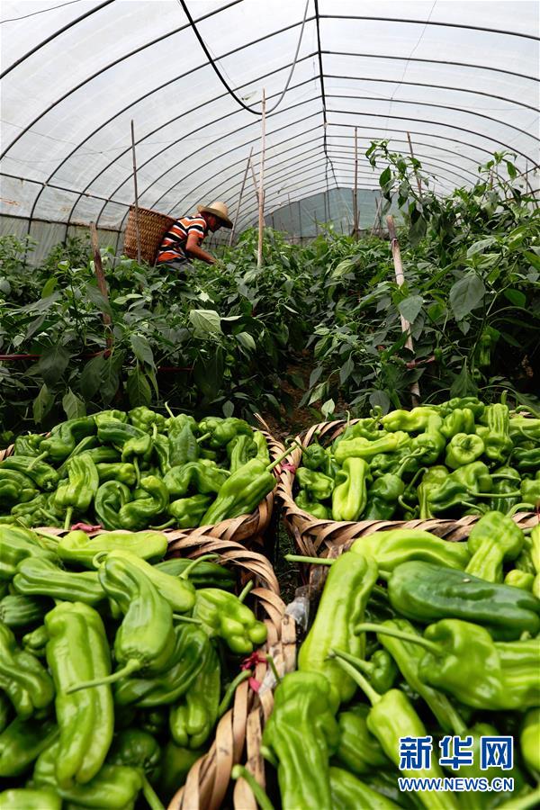 6月29日,在重庆市黔江区舟白街道县坝社区蔬菜基地,村民在采摘辣椒。 夏日炎炎,各地农民抢抓农时忙碌在田间地头。 新华社发(杨敏 摄)