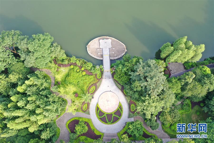 桂林市杉湖景观(7月1日无人机拍摄)。 夏日时节,广西桂林市区内的榕湖、杉湖、桂湖、木龙湖等地绿树成荫、景色迷人。 新华社记者陆波岸摄