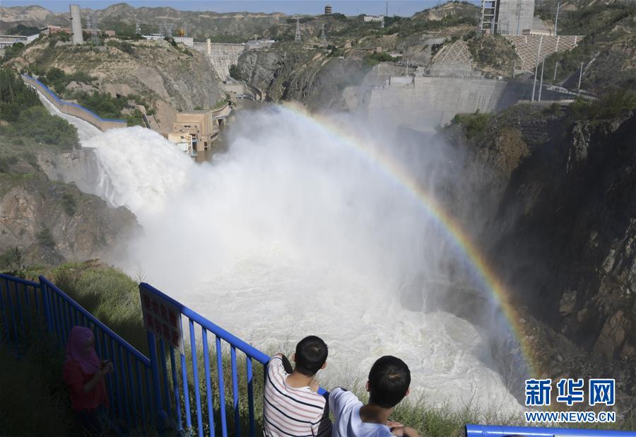 刘家峡水库进行排沙泄洪作业(6月30日摄)。 据介绍,受近日持续降雨影响,刘家峡水库开启溢洪道闸门,加大下泄水量,为黄河平稳度汛提供有力保障。 新华社发(史有东 摄)
