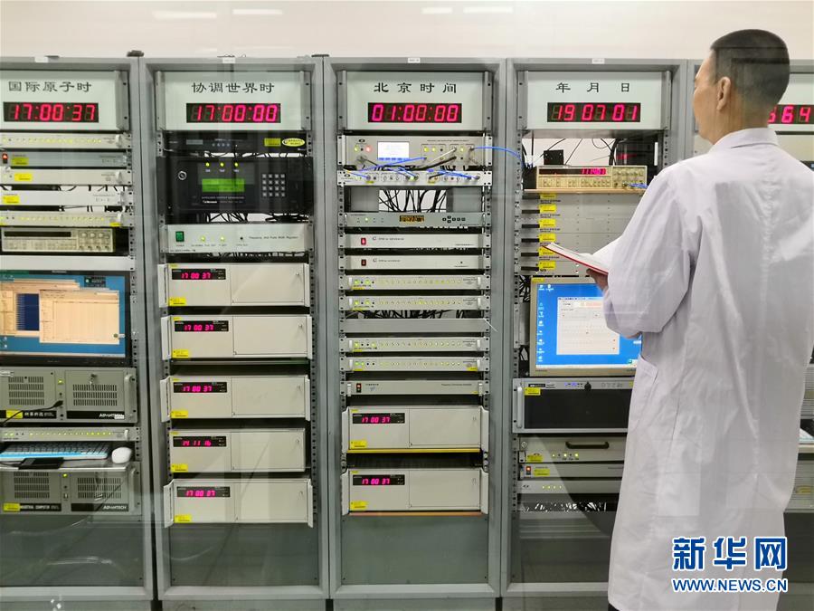 7月1日1时,在中科院国家授时中心守时实验室,科研人员对我国时间基准系统进行运行维护。 新华社发(白浩然 摄)