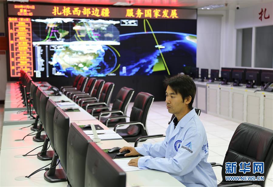7月1日1时45分,在中科院空天信息研究院喀什站机房,科研人员在接收高分业务星C星传回的数据。 新华社发(修义 摄)
