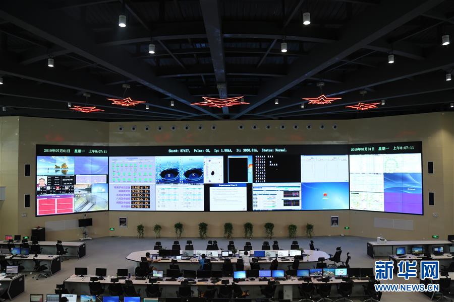 7月1日8时05分,在中科院合肥物质科学研究院东方超环EAST(全超导托卡马克核聚变实验装置)控制大厅,科研人员们在监控实验进展。 新华社发(王天昊 摄)